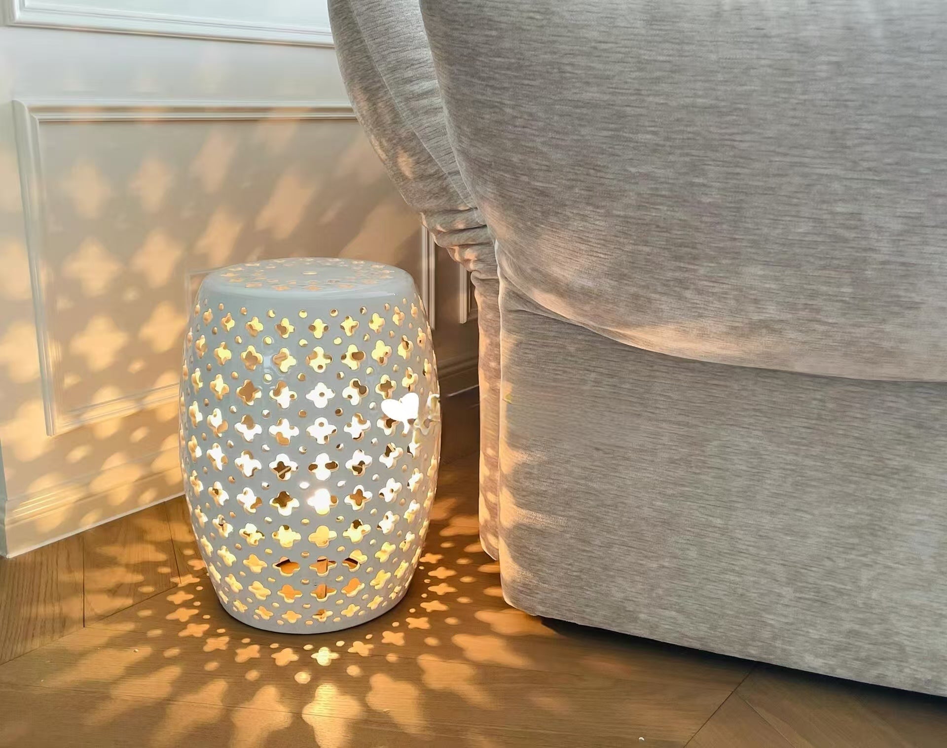 Ceramic garden stool yellow cylindrical lattice outdoor furniture