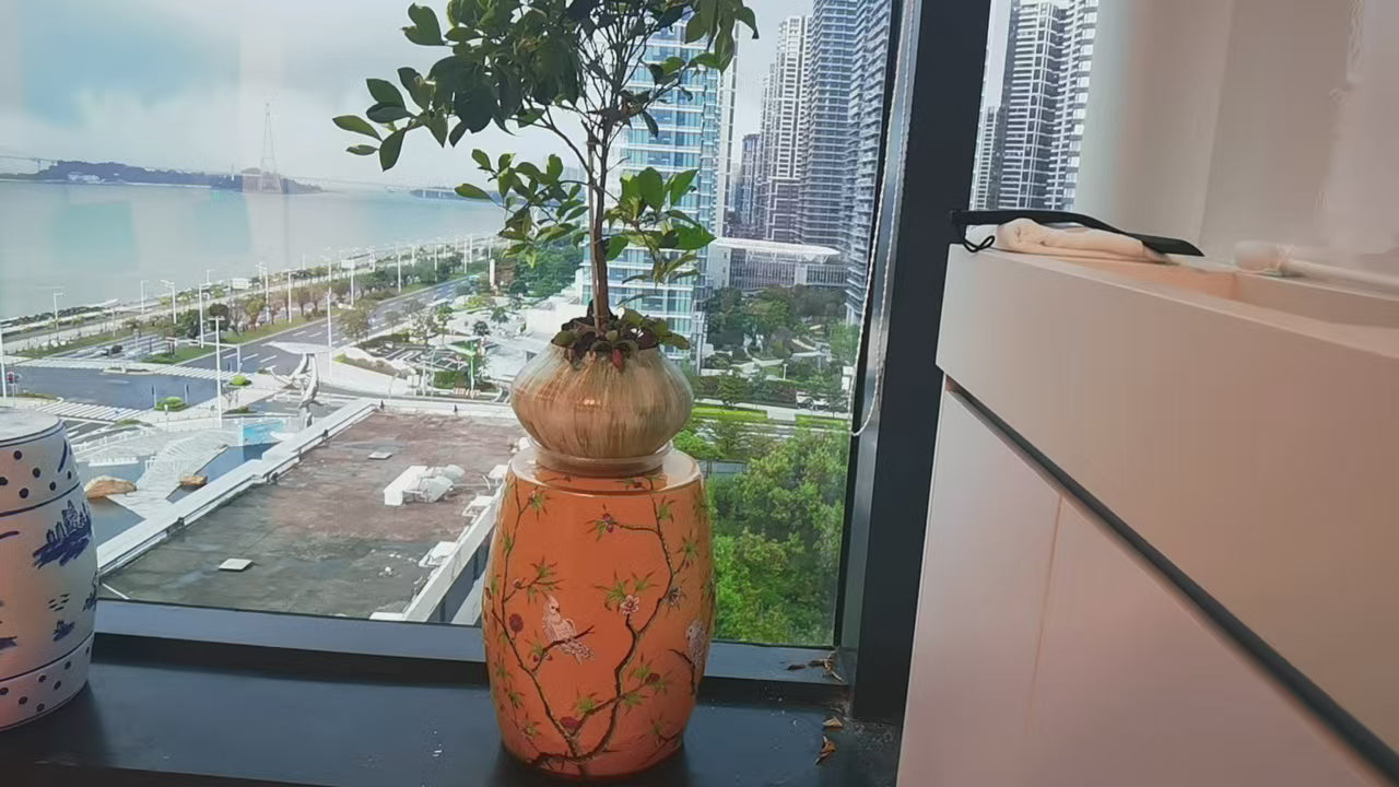 Bright Yellow Ceramic Drum Stool Featuring Blossom Branches and Birds with Decorative Cut-outs